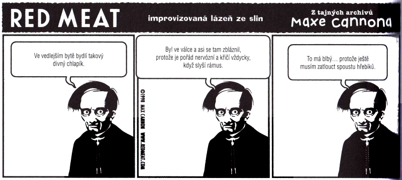 Ačkoliv všechny tři knihy RedMeat dávno mám a četl jsem je několikrát, musel jsem si pořídit i souborné vydání. Je totiž nově přeložené Františkem Fukou, apoštolem a evangelistou tohoto nejčernějšího komiksu. Do Čech ho přinášel už před čtvrtstoletím a publikoval online.