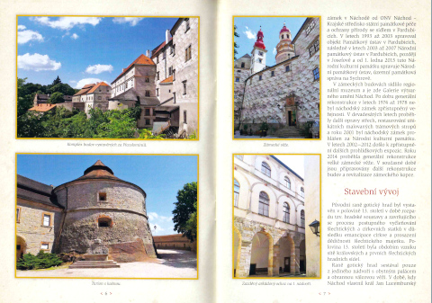 První kapitola Stručný přehled historie je všeobecný souhrn, od první zmínky o Náchodsku až po rekonstrukce a revitalizace v posledních letech. Další kapitola pojednává o stavebním vývoji, tedy znovu chronologicky, ale s důrazem na stavby, přístavby a přestavby. A že jich bylo – zámek postupně získal celých pět nádvoří!